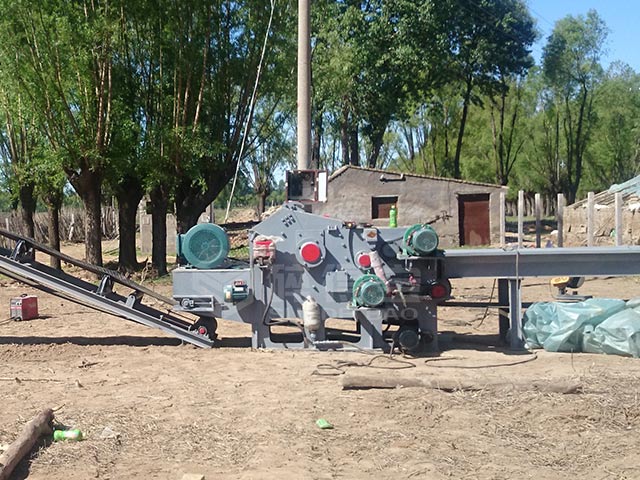 鼓式削片機(jī)由機(jī)體、刀輥、上下喂料輥、輸送帶、液壓系統(tǒng)等部分組成。機(jī)體采用高強(qiáng)度鋼板焊接而成,是整臺(tái)機(jī)器的支承基礎(chǔ)。刀輥上安裝飛刀,用專(zhuān)業(yè)的飛刀螺栓,通過(guò)壓力塊,把飛刀固定在刀輥上。切削的主要原料是小徑木、木材采伐、加工剩余物(如枝丫、枝條、板皮、板條、圓木芯、廢單板等),也可用來(lái)切削非木質(zhì)原料(如甘蔗、蘆葦、毛竹等)。